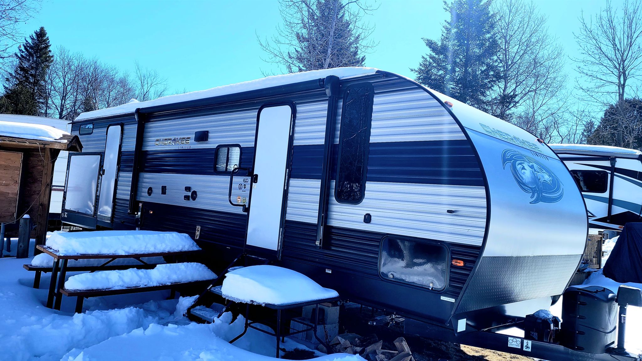 La remorque est une Cherokee 294 BH 2020. Equipée d'un système d'alimentation solaire. Mise à niveau professionnelle et hivernage. Sans fumée. Utilisée seulement pendant 2 saisons. COMME NEUVE !